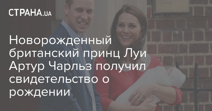 Новорожденный британский принц Луи Артур Чарльз получил свидетельство о рождении