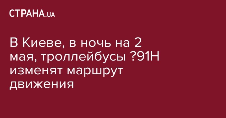 В ночь на среду, 2 мая в Киеве троллейбусы №91Н изменят маршрут движения - в связи с заменой контактного провода на троллейбусной линии на ул. Симона Петлюры.