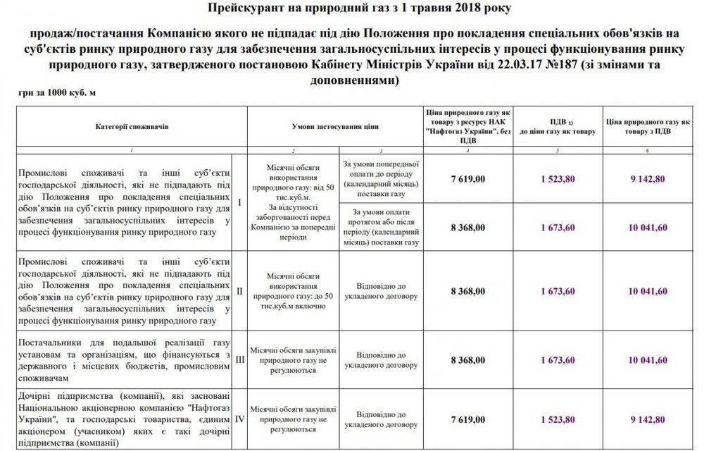 С 1 мая 2018 года вступили в силу новые цены от Нафтогаза на природный газ для промышленных предприятий и других субъектов хозяйствования Украины.