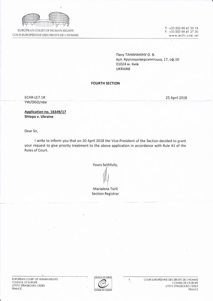 ЕСПЧ рассмотрит жалобу Штепы в приоритетном порядке - адвокат