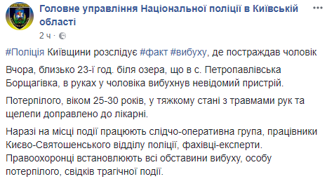 Взрыв прогремел около 23:00 у озера. В результате пострадал мужчина.