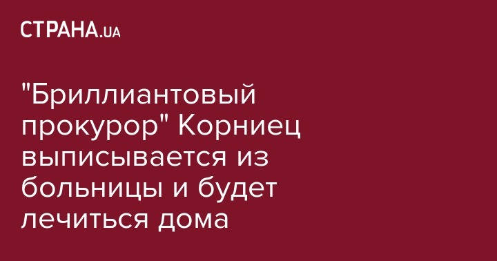 "Бриллиантовый прокурор" Корниец выписывается из больницы и будет лечиться дома