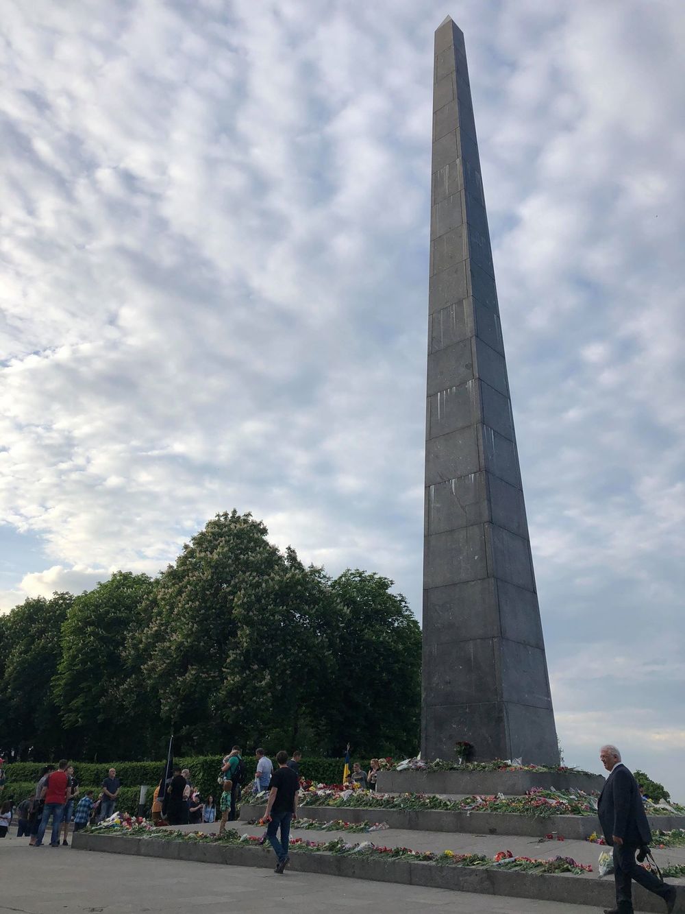 Сегодня, 9 мая, когда Украина отмечает День Победы, у Вечного огня в Киеве собралось огромное количество цветов, которые люди принесли в память о героях.