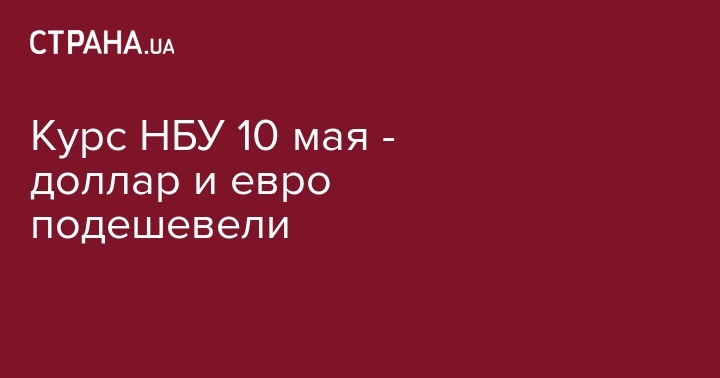 В четверг, 10 мая, Нацбанк установил официальный курс гривны по отношению к иностранным валютам. По сравнению с предыдущим рабочим днем 8 мая доллар и евро подешевели.