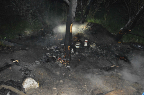 Ориентировочно, в сооружении находились бездомные, огнем уничтожены деревянные поддоны и личные вещи (матрасы, одежда) на площади 15 м.кв.