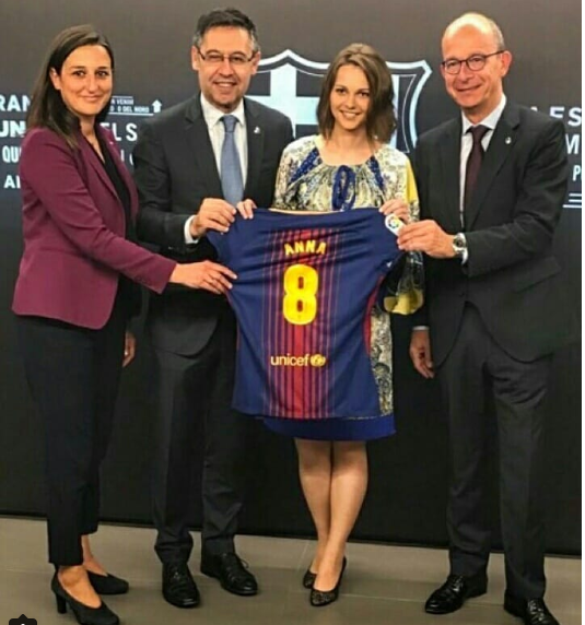 Футболисты вручили Анне Музычук именную футболку с номером легендарного Андреса Иньесты, который покинет "Барселону" по окончании сезона.