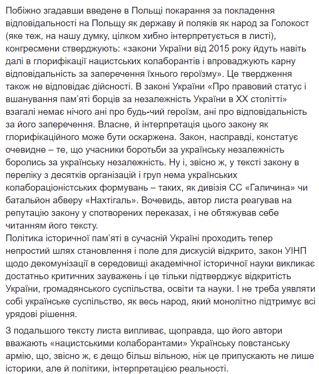 "Ну, и конечно, вишенка на торте: "появление письма является частью новой волны антиукраинской пропаганды, спекулирующей на теме антисемитизма. Мы расцениваем данное письмо как антиукраинскую диффамацию, которая уже используется в пропагандистском секторе гибридной войны РФ против Украины".
