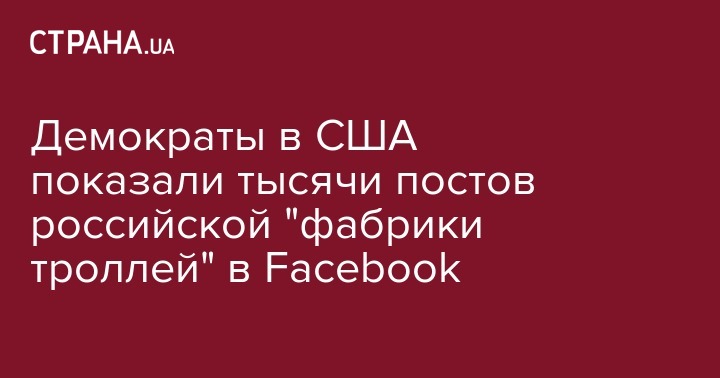Демократы из Палаты представителей Конгресса США обнародовали отчет, в котором собрали около 3,5 тыс. рекламных постов политического характера в Facebook. По данным демократов, они распространялись по заказу так называемой "фабрики троллей" российской организации "Агентство интернет-исследований" и могли повлиять на выборы президента в 2016 году.