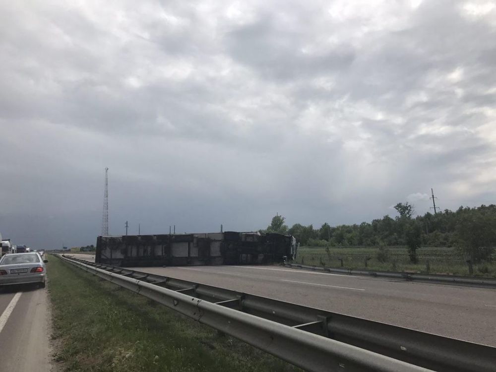 В Одесской области на трассе Киев-Одесса М-05 перевернулась фура, перегородив часть дороги.