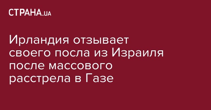 Ирландия отзывает своего посла из Израиля после массового расстрела в Газе