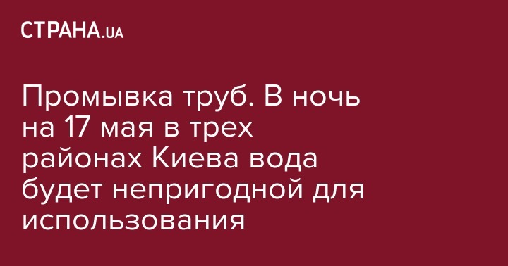 В ночь с 16 на 17 мая Киевводоканал проведет плановую промывку сетей в Голосеевском, Дарницком и Шевченковском районах. На это время вода станет непригодной к использованию.