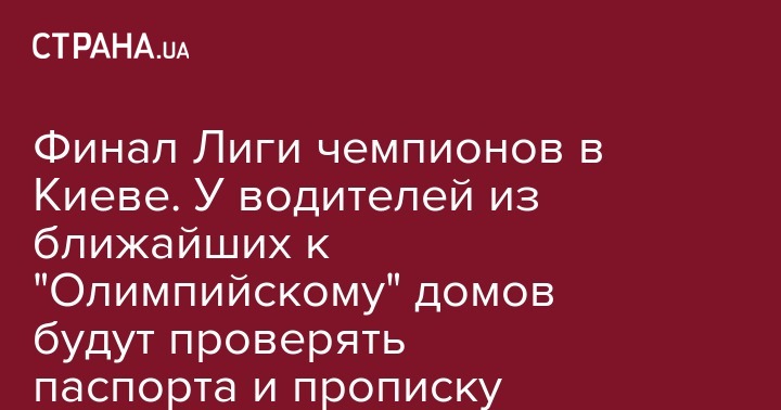 Во время проведения матчей Лиги чемпионов в Киеве у водителей автомобилей, которые проживают в домах, расположенных возле НСК "Олимпийский", будут проверять паспорта и регистрацию. Такие меры предпримут для недопущения терактов.
