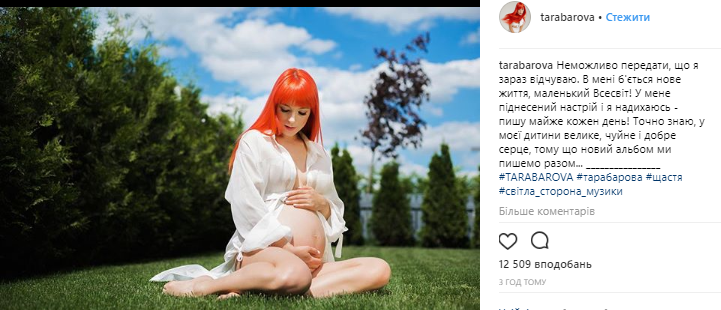 "Невозможно передать, что я сейчас чувствую. Во мне бьется новая жизнь, маленькая вселенная! У меня возвышенное настроение и я вдохновлена – пишу почти каждый день! Точно знаю, у моего ребенка большое, чуткое и доброе сердце, потому что новый альбом мы пишем вместе...", – написала Тарабарова в соцсети.