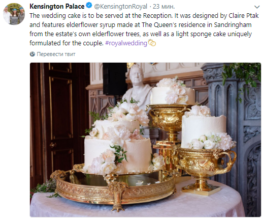 В Виндзорском дворце уже сервировали свадебный торт, украшенный пионами и розами