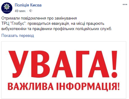 Сегодня, 19 мая, после обеда из торгового центра "Глобус" на Майдане Независимости в Киеве эвакуировали сотрудников и посетителей.