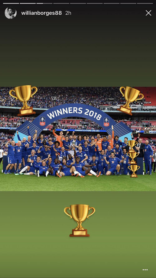 После окончания игры он опубликовал победное фото в Instagram Stories фото, на котором "замазал" главного тренера Антонио Конте с помощью эмодзи и кубков.