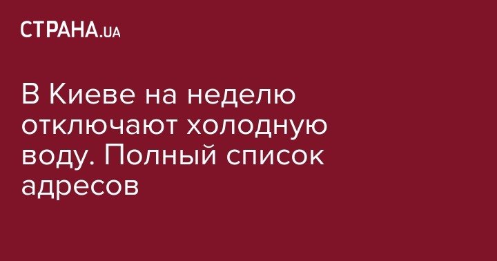 В Киеве на срок со вторника 22 мая по среду 30 мая запланировано масштабное отключение холодной воды потребителям. Это будет сделано из-за ремонтных работ на городской сети водоснабжения.