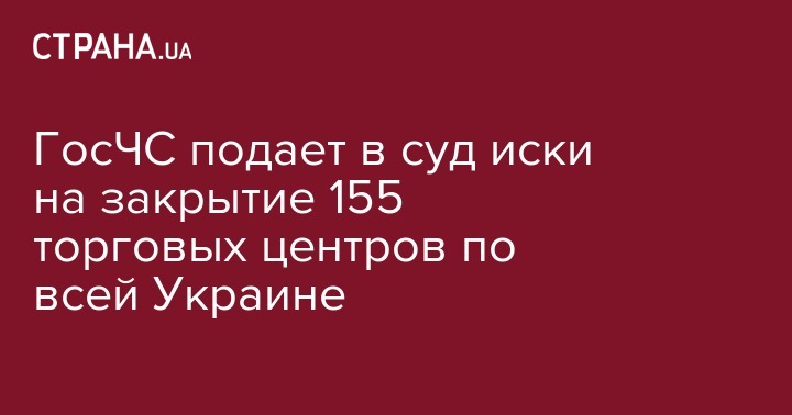 Государственная служба Украины по чрезвычайным ситуациям Украины (ГСЧС) после проверок подала в суд иски на закрытие 405 объектов, из которых 155 торгово-развлекательных центров, 30 больниц и 220 детских садов из-за несоблюдения мер пожарной безопасности.