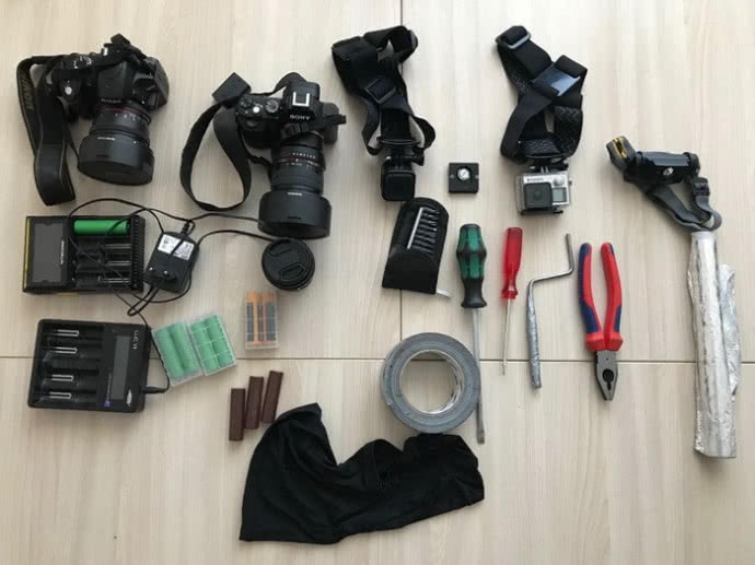 При осмотре вещей задержанных сотрудники СБУ обнаружили альпинистское снаряжение, технические средства фото- и видеофиксации, а также устройства механического взлома для преодоления систем охраны.