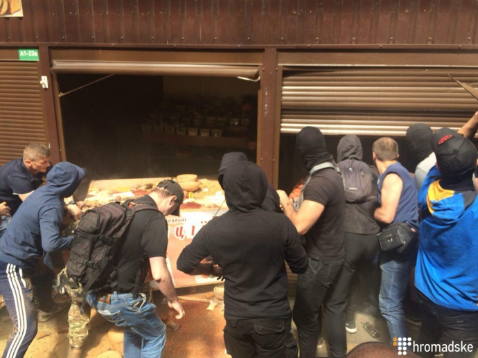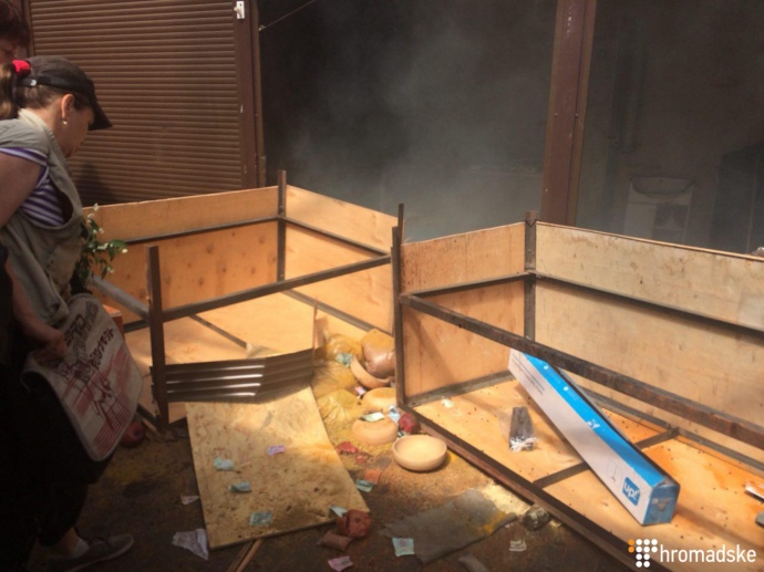 Сначала указывалось, что в погроме, принимали участие радикалы С14, которые начали громить киоски и ломать ролеты. Однако в С14 опровергли эти сообщения, и информация была исправлена.