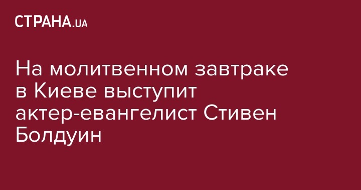 В четверг, 31 мая, на Национальном молитвенном завтраке в Киеве с речью выступит американский актер, брат актера Алека Болдуина Стивен.