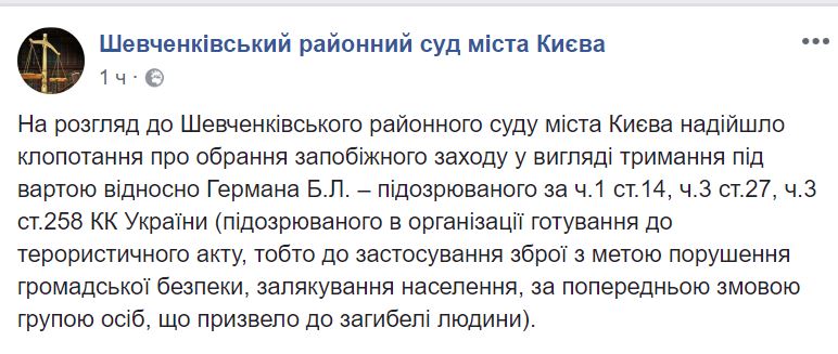 СБУ задержала Германа вчера на улице в Киеве. Ему инкриминируют подготовку террористического акта - по версии следствия, мужчина собирался убить десятки человек. И все это якобы по заказу из России.