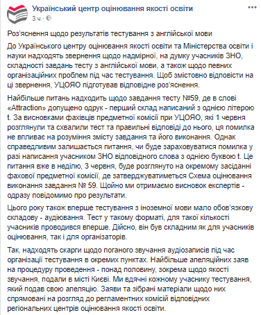 Украинский центр оценивания качества образования дал разъяснения по результатам ВНО по английскому языку после многочисленных жалоб.
