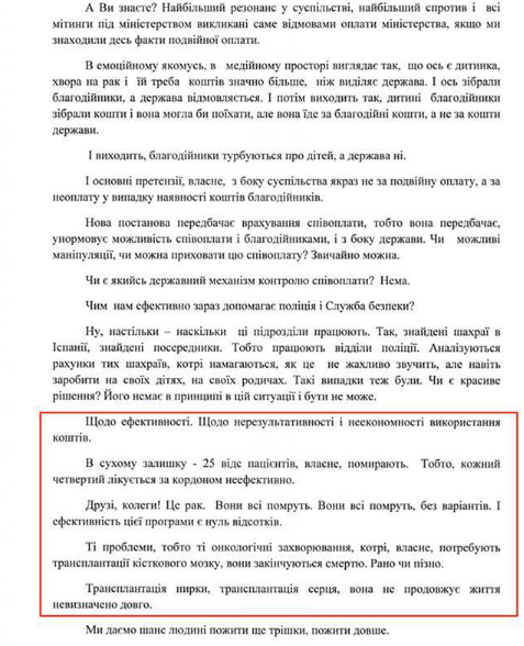 Заместитель Министра здравоохранения Украины Александр Линчевский во время выступления в Счетной палате Украины заявил, что средства на лечение онкобольных украинцев за рубежом, выделять нецелесообразно, поскольку четверть пациентов все равно умрут.
