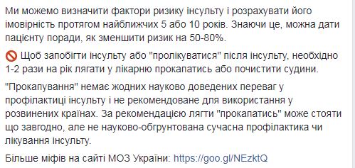 "В большинстве случаев инсульта капельницы имеют смысл лишь в течение 1-2 суток от начала заболевания. Большинство лекарств, которые при инсульте широко используются в Украине и вводятся при помощи капельниц (лекарство для "защиты", "лечение" или "восстановление" мозга, так называемые нейропротекторы, "сосудистые препараты, антиоксиданты, антигипоксанты и тому подобное) не имеют научно доказанной безопасности и эффективности и не используются для лечения инсульта", - пишет она.