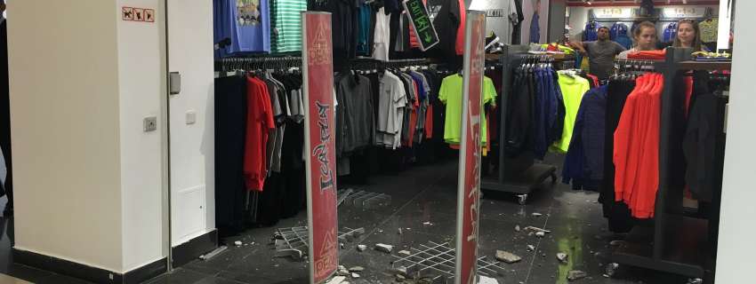 Магазин продолжает работать, потому что повреждения незначительные, уверяют в администрации торгового центра.