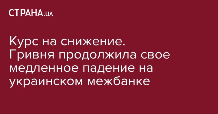 Также курс гривни на межбанковском рынке Украины пошел вниз в первый же день недели.