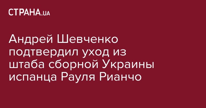 "Хотел бы сообщить, что прекратил сотрудничество со сборной Украины один из наших тренеров - Рауль Рианчо. Он покидает команду. Мы очень благодарны Раулю за его работу и желаем успехов в будущем", - сказал Шевченко.