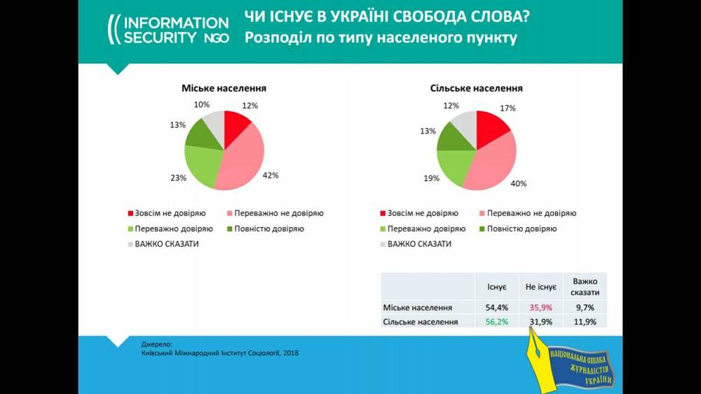 Радует, что все-таки 55% граждан Украины считают, что у нас есть свобода слова. В то же время 34,6%, которые считают, что ее у нас либо нет частично или совсем нет - это очень большое количество населения. Итак, цифры показывают, что и государственным органам и медийным организациям предстоит еще многое сделать, чтобы изменить это отношение", - прокомментировала Попова.