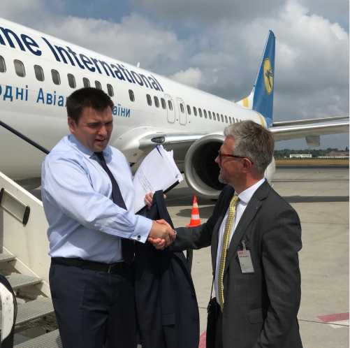 Он проиллюстрировал свой пост фотографией встречи с Климкиным в аэропорту.