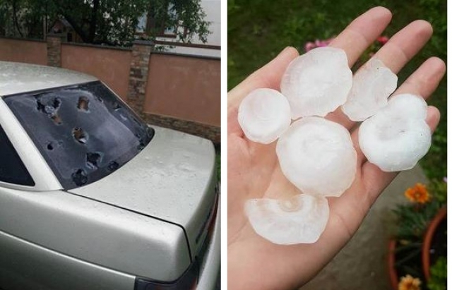 Накануне в Словении град размером с теннисный мяч побил авто и крыши домов.