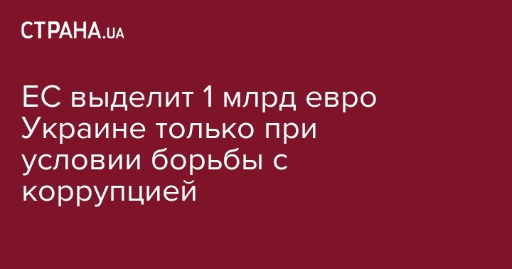 Предоставление сегодня Европарламентом Украине макрофинансовой помощи в размере 1 млрд евро, рассчитано на два платежа в течение 2,5 лет при условии прогресса в борьбе с коррупцией.