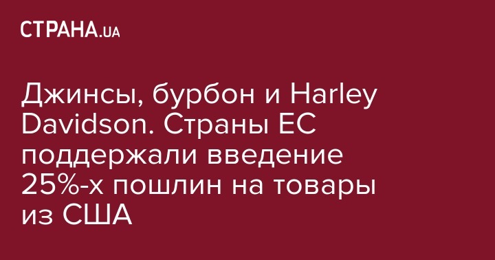 Среди товаров, которые будут облагаться новой пошлиной, - мотоциклы Harley Davidson, джинсы Levi Strauss и бурбон.