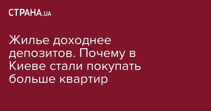 Но в любом случае, по крайней мере в Киеве, доходность инвестиций в покупку жилья с последующей его сдачей в аренду однозначно выше валютных депозитов. Что стимулирует отток средств со счетов в банках и рост сделок по покупке недвижимости.