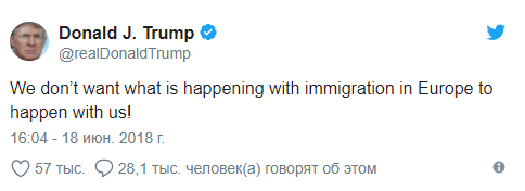 "Мы не хотим, чтобы то, что происходит с иммиграцией в Европе, происходило с нами!" - заявил президент США.