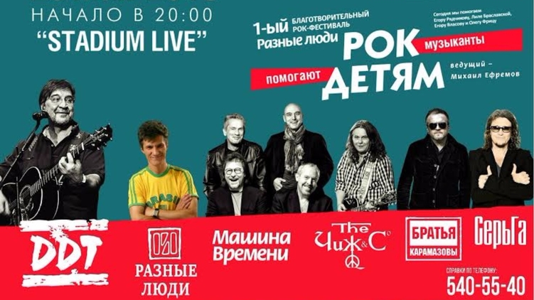 "Мы с ребятами, моими друзьями и соратниками - Юрием Шевчуком, Борисом, Гребенщиковым, Андреем Макаревичем, Олегом Карамазовым - решили проводить регулярные благотворительные рок-фестивали "Разные люди", где музыканты будут собирать средства на лечение тяжелобольных детей. В первый раз мы соберемся 25 мая 2016 года на одной из самых больших концертных площадок Москвы "Stadium Live" в помощь конкретным четырём малышам", - рассказал Александр Чернецкий.