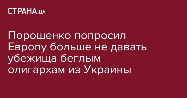 Порошенко попросил Европу больше не давать убежища беглым олигархам из Украины