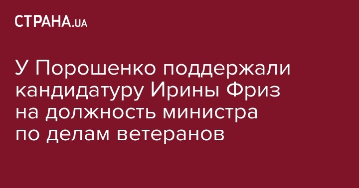 У Порошенко поддержали кандидатуру Ирины Фриз на должность министра по делам ветеранов