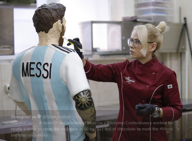 Скульпторы-кондитеры учли все особенности внешности футболиста - от эспаньолки Месси до его татуировок на теле.