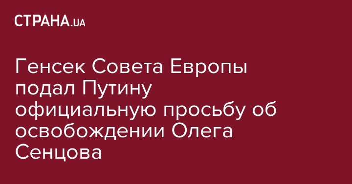 Генеральный секретарь Совета Европы Турбьерн Ягланд подал официальное заявление на имя  президента России Владимира Путина с просьбой помиловать украинского режиссера Олега Сенцова, который отбывает наказание в российской тюрьме и голодает уже 44-й день (по состоянию на 26 июня).