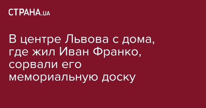 Сегодня, 28 июня, в полицию поступила информация, что неизвестные сорвали мемориальную доску писателю Ивану Франко, установленную на стене дома по улице Соломии Крушельницкой в центре Львова.