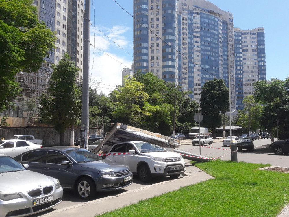 В субботу, 30 июня, в Одессе рекламный билборд рухнул на припаркованный автомобиль. Об этом сообщает местное издание "Думская".