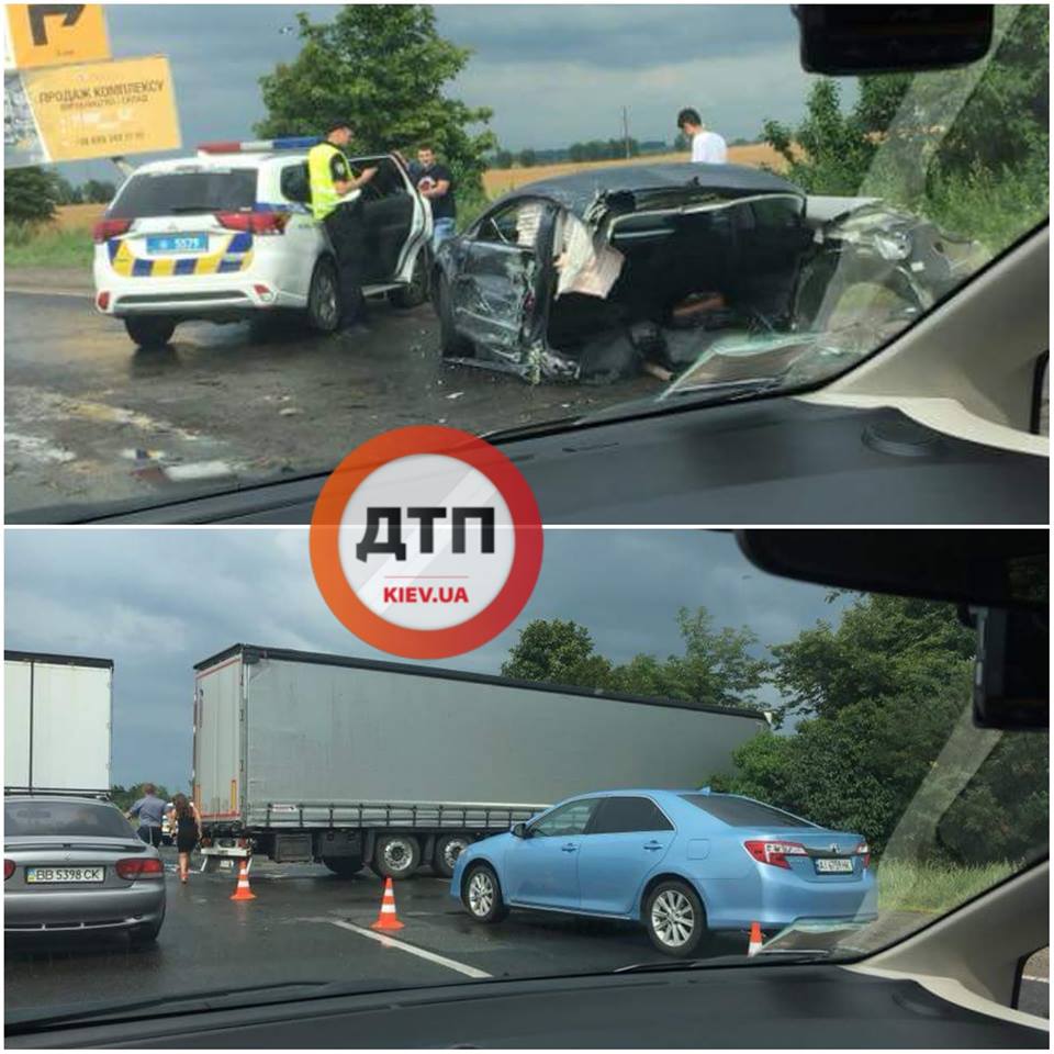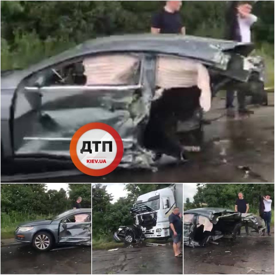 На трассе Киев – Чернигов у Скибина произошло ужасное ДТП: Volkswagen разорвало надвое о грузовик.