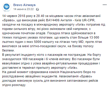 На самом деле проблемы у компании начались раньше, чем появились задержки рейсов. 14 июня аэропорт "Киев" закрыли из-за аварийной посадки самолета "Анталия - Киев", принадлежащего "Браво".