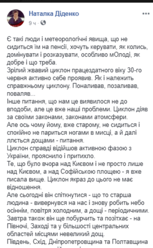 Об этом сообщает синоптик Наталья Диденко на своей странице в Facebook.