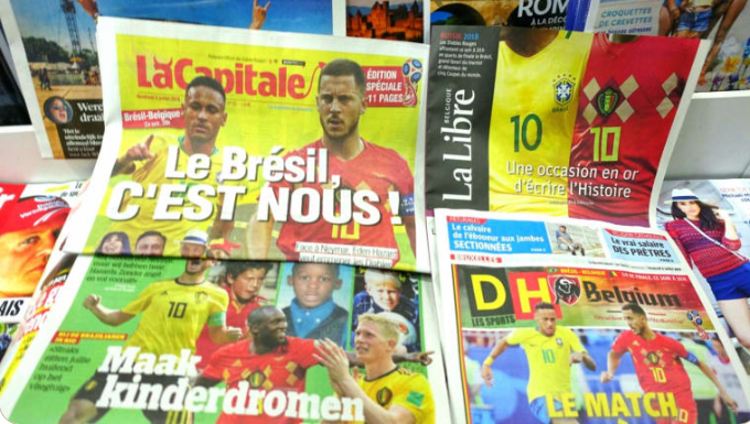 17:50 Заголовки всех бельгийских газет посвящены сегодняшнему матчу с Бразилией.